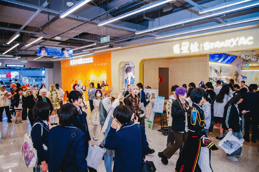 除了二次元以外,饭圈文化也是商业连接年轻消费者的社交货币之一。杭州大悦城借助杭城年轻化的客群表现和空间场景优势,在粉丝经济大力推动消费增长的时代,将饭圈文化与二次元经济多维叠加,形成了杭州大悦城立体化的泛次元、泛娱乐矩阵体系,精准触达Z世代圈层,玩转最新IP和潮流互动场景。