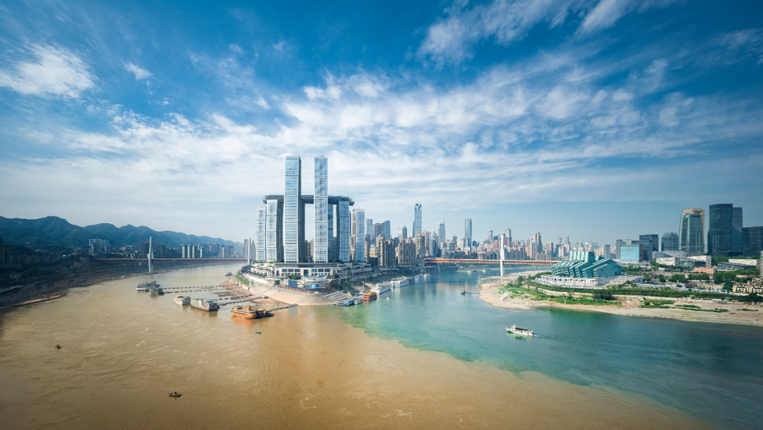 项目坐落于长江和嘉陵江交汇处——朝天门,是城市心脏坐标“零公里”所在地,集合轨道交通、公交、轮渡为一体的多维立体交通网络,无缝对接城市三大CBD(解放碑、江北嘴、弹子石)及周边商圈。