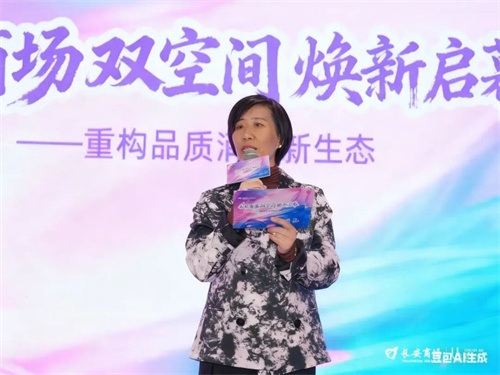 长安商场党总支书记、总经理李春晖对各级领导、各界朋友长期以来对长安商场的关心与支持表示感谢,向为此次焕新付出智慧与汗水的员工团队致以崇高敬意!她讲到,长安商场积极响应集团“加速转型”的战略部署,主动扛起“社区生活中心”的转型重任,通过对原二层女装区与G层超市区域的全面改造,成功打造出“悦己空间”与“长安新鲜市”两大特色场景,通过空间和内容重构以及服务体验升级,推动商场成为连接人与生活、社区与城市的温情纽带。
