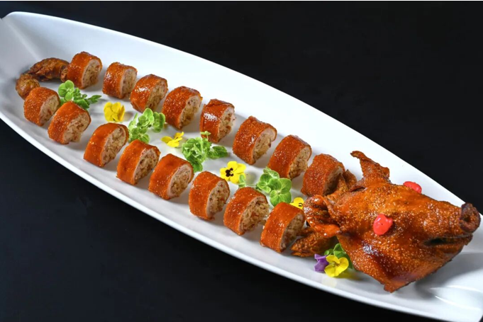 大三元酒家以精湛的粤菜烹饪技艺闻名遐迩,其招牌菜"太爷鸡",由民国时期县太爷周桂生独创,选用三黄鸡加入药材卤制后,再用茉莉花茶和白糖熏制,皮香肉嫩,茗味芬芳。