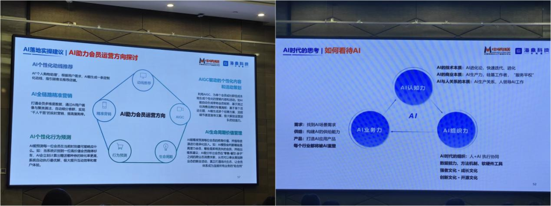针对AI时代的商业应用,老师认为AI已经从感知世界发展到创造世界阶段,AI的业务力、认知力、组织力将加速重塑每个行业发展。对于AI落地实施操作方法论与助力会员运营,老师提出了几点“AI赋能运营”的核心建议。