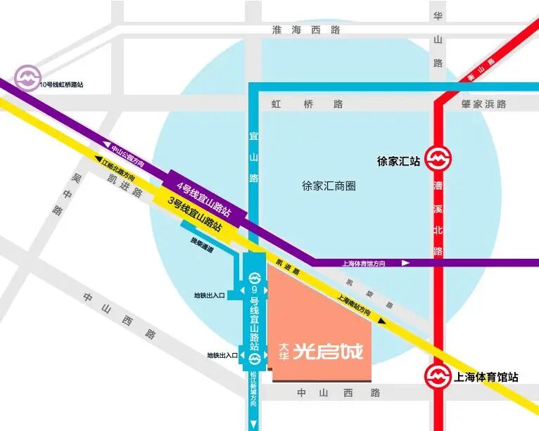 徐汇大华光启城深植于徐汇宜山路核心商圈,紧邻地铁3、4、9号线交汇的黄金枢纽,日均客流超50万;项目周边社区成熟,外资企业、高知家庭与年轻白领聚集,精准对应了超级悦沢的两大核心客群:追求时尚、热衷IP与打卡的年轻女性,注重家庭教育与品质生活的中产家庭。