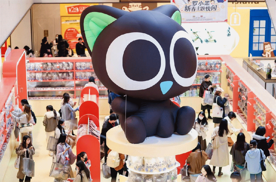 上海苏河湾万象天地落地的《国民IP罗小黑》携全新中式场景首秀,胡桃夹子碰撞中国新年,为观众呈现近百款精美周边和实用好物首发。美陈区域内设置自由盖章区,暖冬集章互动性十足,参与趣味打卡活动、get惊喜满赠礼品,在冬日画卷中解锁一处专属的温暖角落。