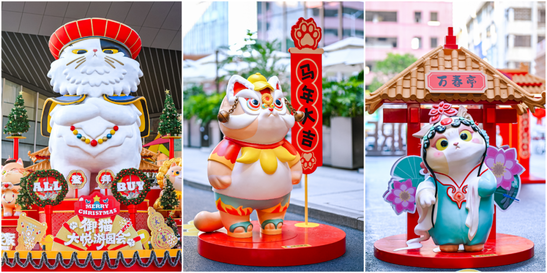 深圳大悦城双旦推出全国商业首展“御猫大悦游园会”,故宫御猫家族首次萌趣南下。展览以8米高“鳌拜”巨型御猫领衔,携16位成员亮相,特别结合商场星光道打造“御猫阵列街区”,一步一景,构建沉浸式游园动线。