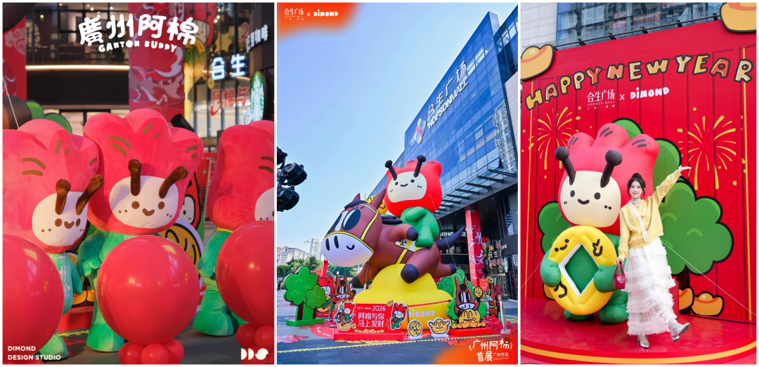 2025年12月21日至2026年2月28日,广州海珠合生广场以“阿棉与你马上发财”为主题,采用本土萌系IP与广府文化融合风格,全场景打造“阿棉启新,花开财来”双旦狂欢盛典。