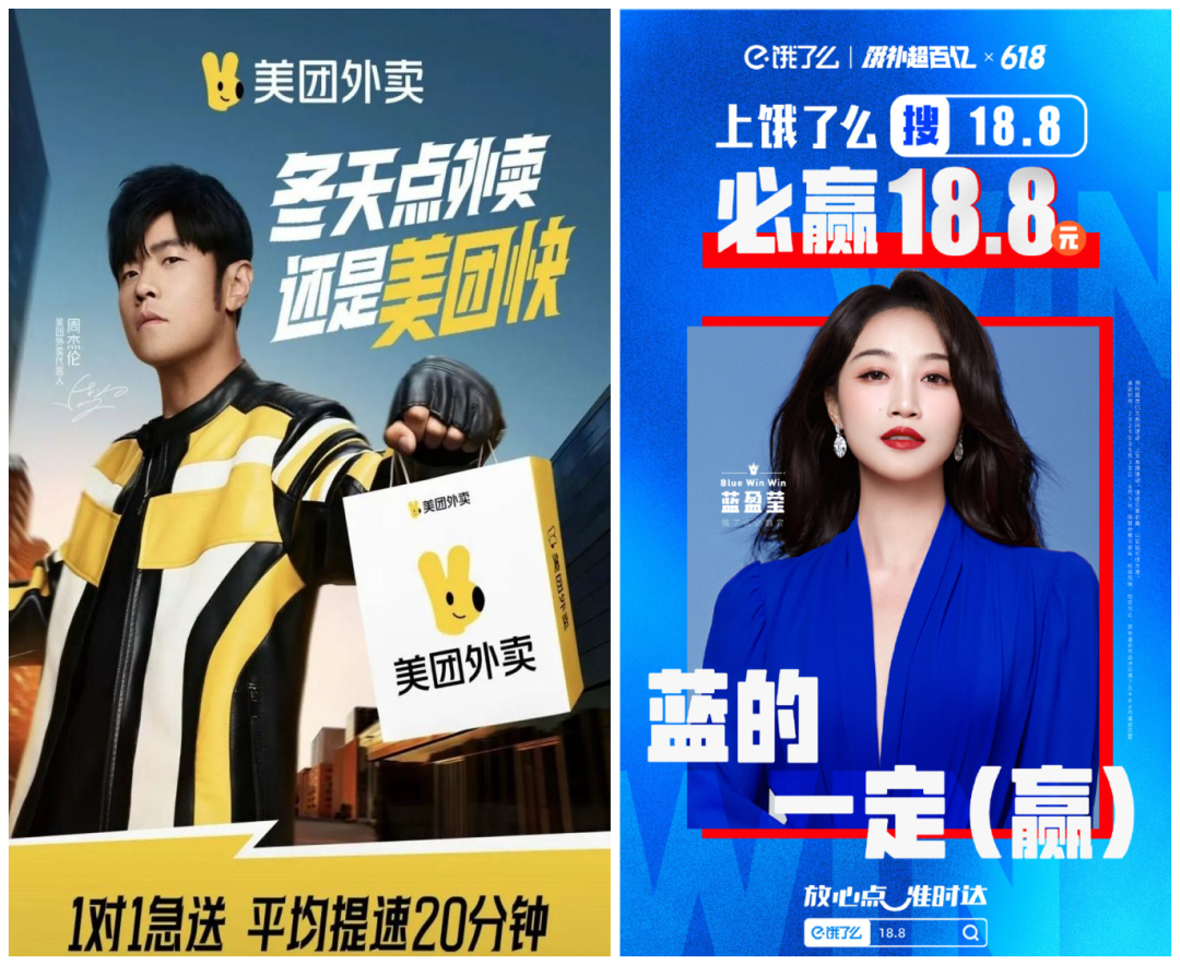 其中,淘宝闪购率先打出明星矩阵牌,邀请金晨担任“礼遇大使”,联动王星越、许凯等6位品牌大使集体站台,叠加福利红包,将平台代言营销的热度推向新高。在白热化的流量争夺战中,外卖平台明星代言早已不是单个代言人的“孤军奋战”,彻底颠覆了以往依赖单个代言人“以小搏大”的营销模式。