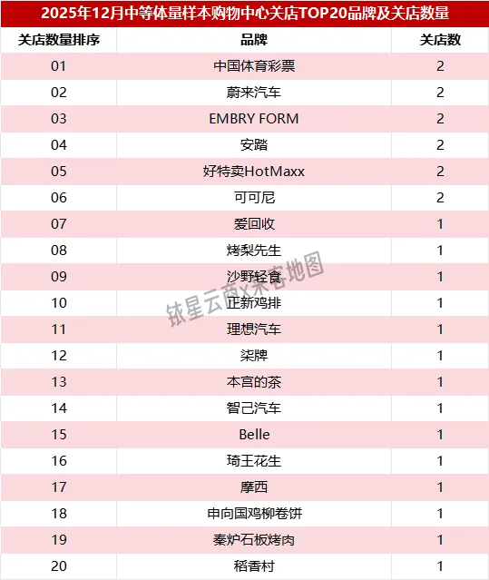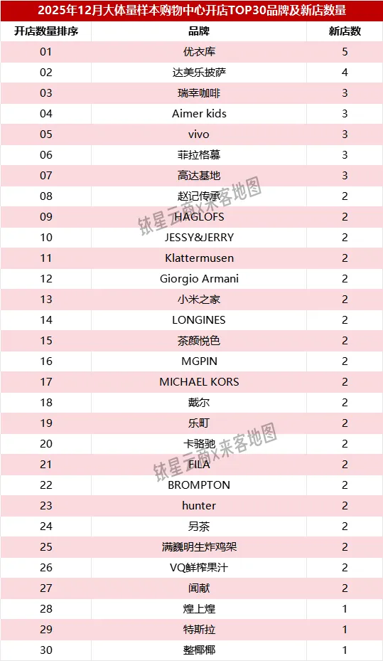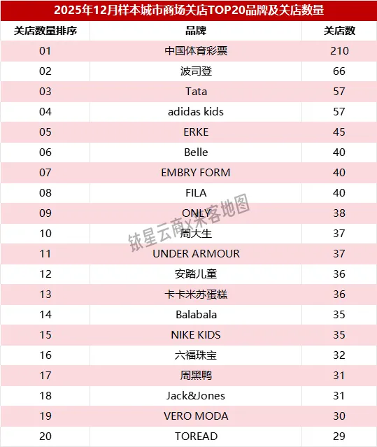 本篇为中购联铱星云商×来客地图《全国商场2025年12月客流报告·品牌开关店》,每月一期,为商业地产人士提供一个高效快捷获取样本商场品牌开关店动态的端口。
