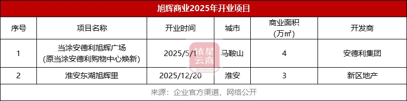 旭辉商业去年共开业2座轻资产项目,1座为老百货焕新,1座为增量新开,分别位于安徽马鞍山及江苏淮安。