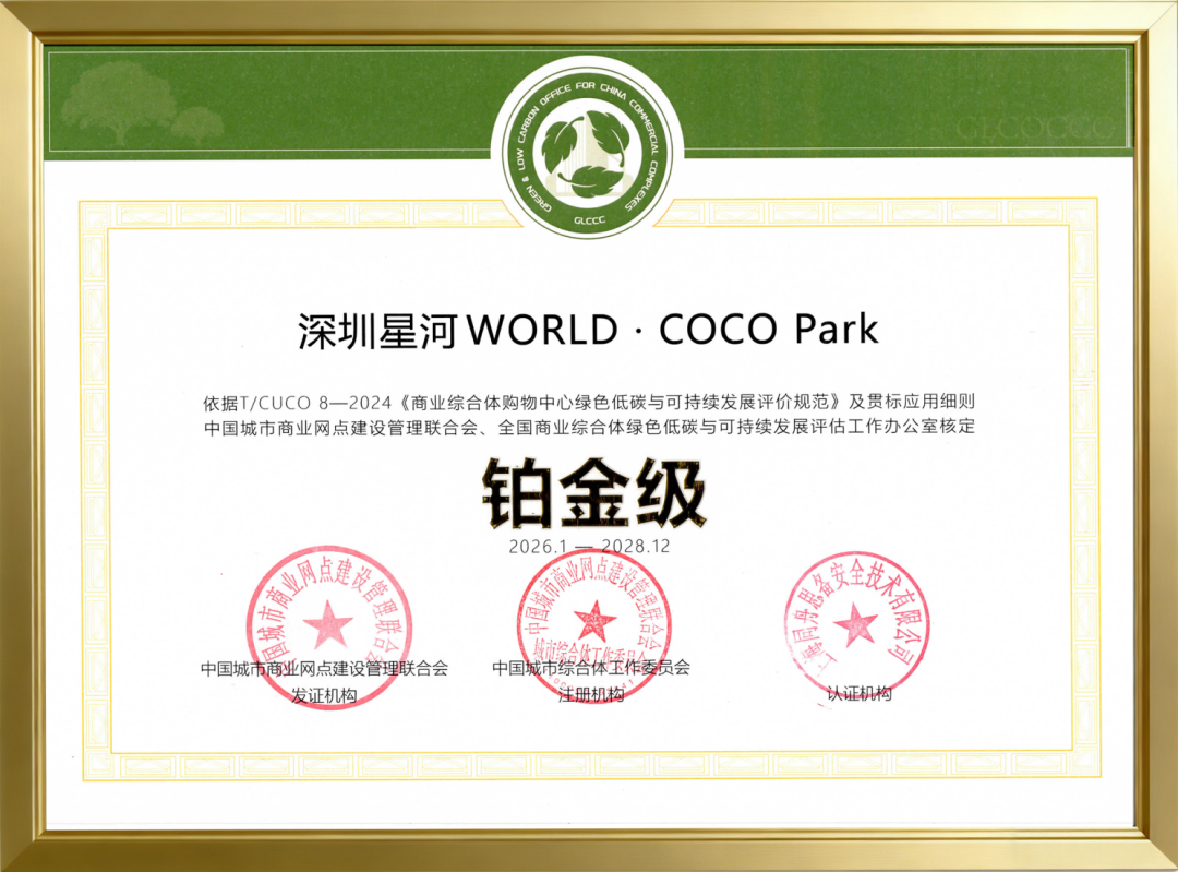未来,星河WORLD·COCO Park将继续深化可持续发展战略,致力于打造更多可复制、可推广的绿色商业范本,为整个行业的可持续发展注入持久动力。