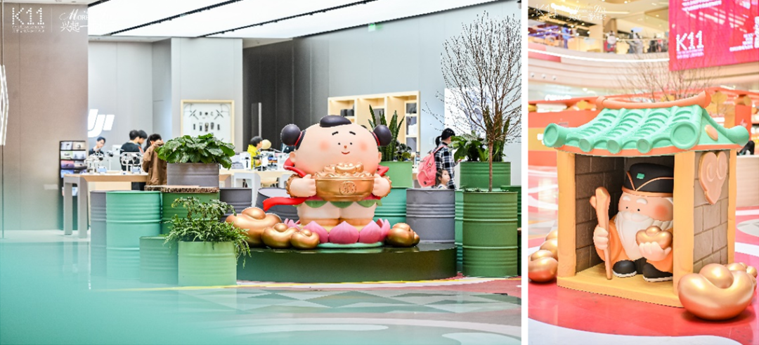 新春期间,汉溪K11也将在中庭以“大美术馆快闪店”新年财神系列盲盒新品为灵感进行新春焕新,打造沉浸式新春美陈氛围,萌化版的“善财童子”、“关公”、“财帛星君”等财神形象雕塑吸引顾客纷纷打卡留念,收获一番好运。