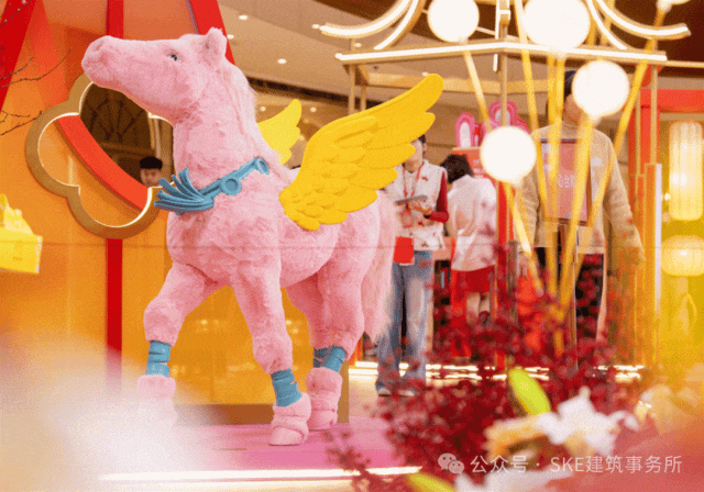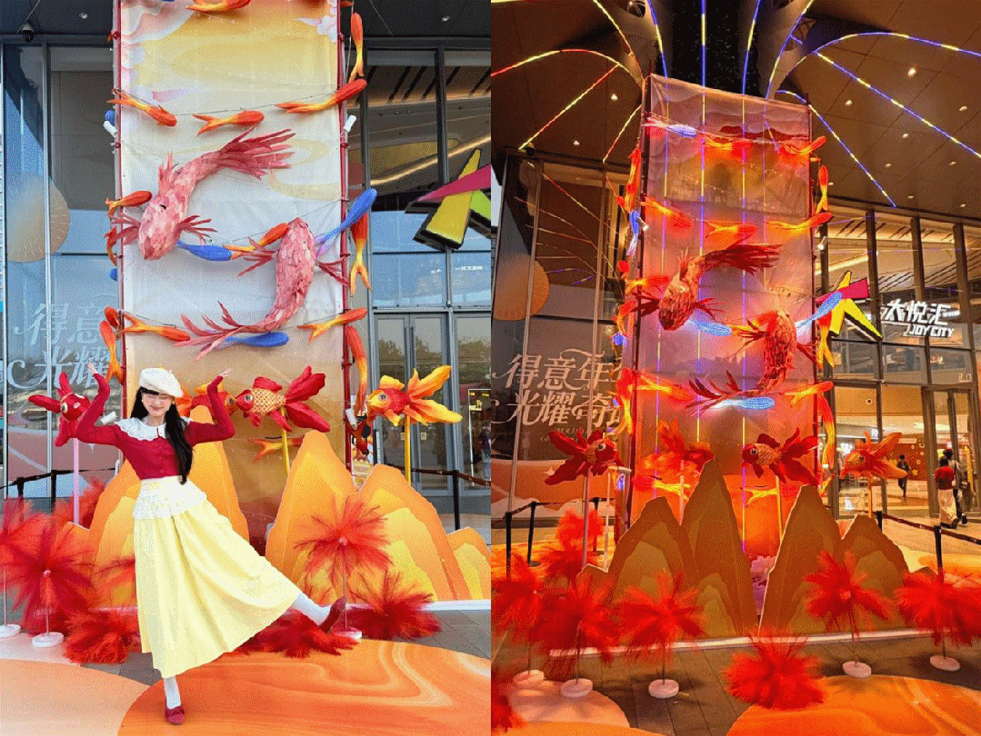 春节期间,广州黄埔大悦汇落地了“中国门神・关关过”主题IP展,以5米高粉红关公及“次次成”吉运坐骑打造网红打卡点,财神庙互动小屋、旋转木马祈福台等沉浸式体验场景,营造了浓厚新春氛围;同步打造了“灯悦新禧”新春主题鱼灯展,鱼群游弋灯光装置搭配马踏迎春光影效果,夜间极具氛围感。