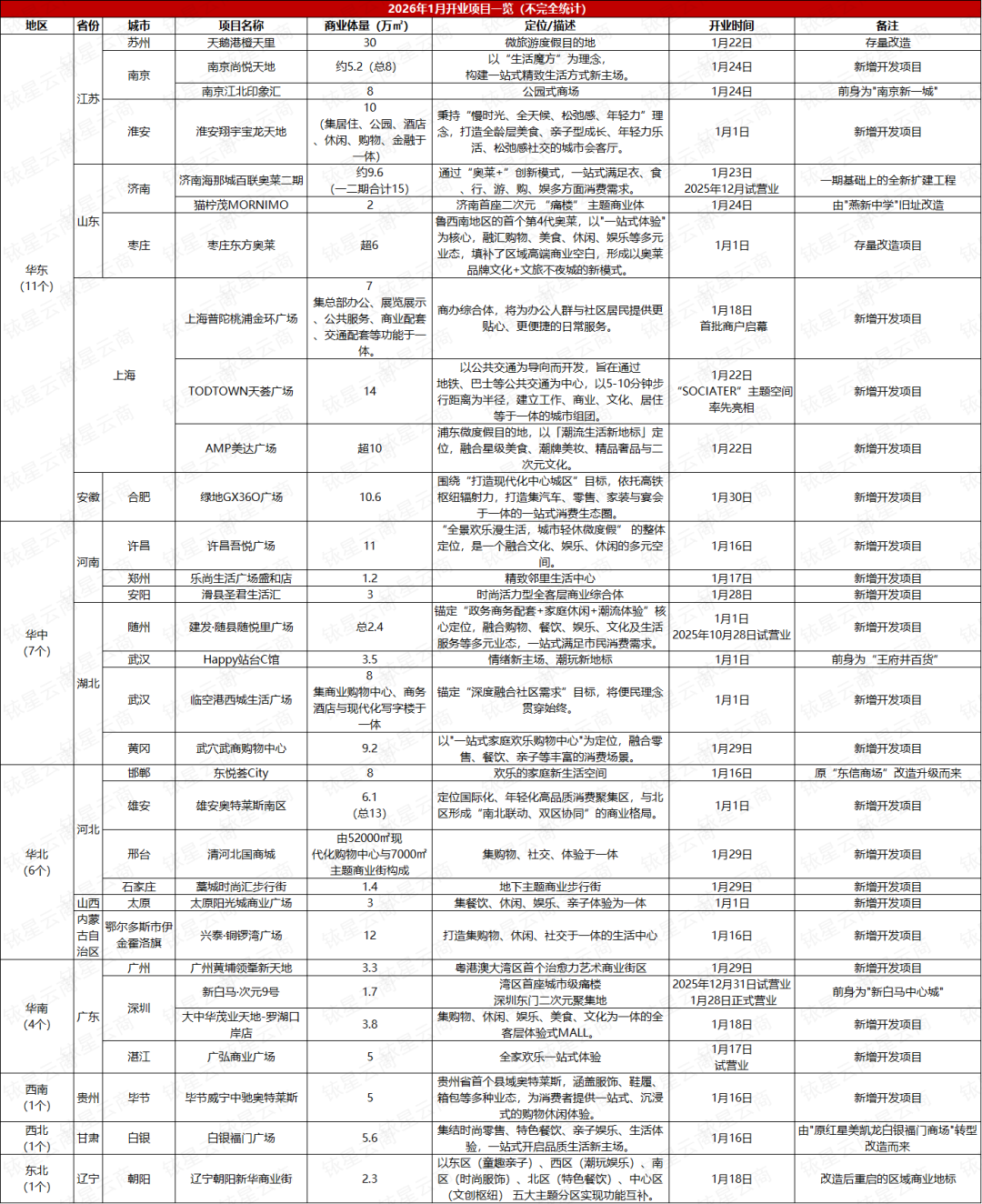 每月一盘:1月开业项目31个,商业体量合计超213万㎡。