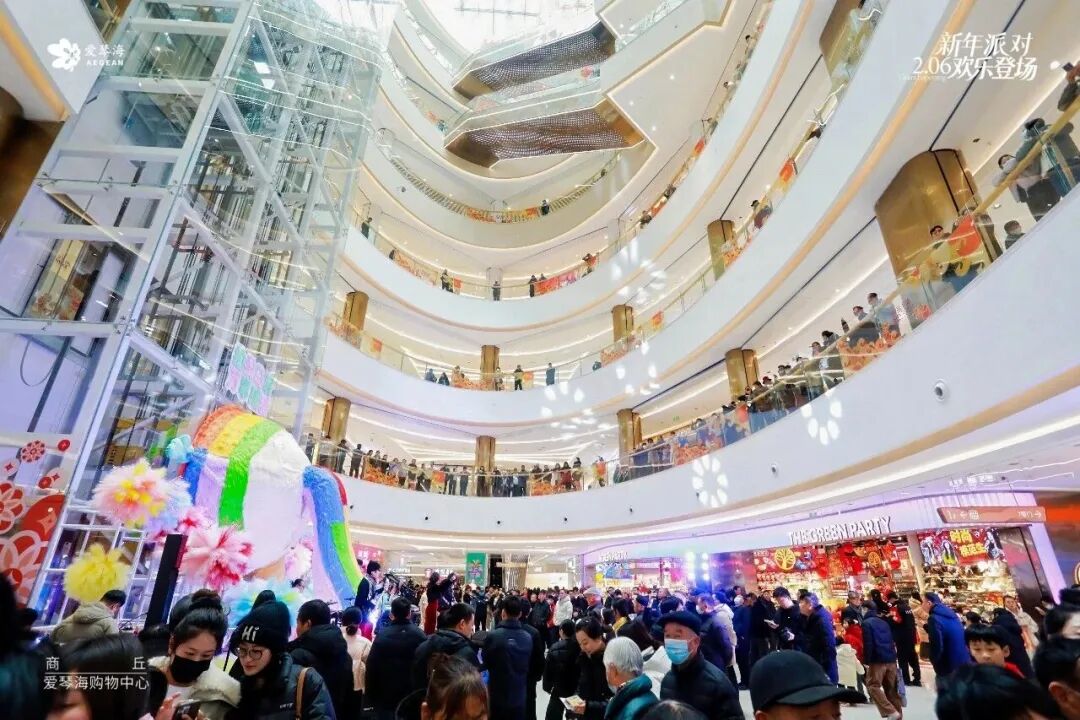 2月6日,建筑面积约8万平方米的河南商丘爱琴海购物中心正式开业。该项目以都市潮派欢享地为定位,汇聚超过130家品牌,其中商丘首进品牌超30家,包括沉浸式运动场馆酷迪星KD、豫东首个机器人IP科技馆、潮流娱乐品牌魅KTV、山婉婉、小江溪、醉巴鲜烤鱼、泰禾荟等 。