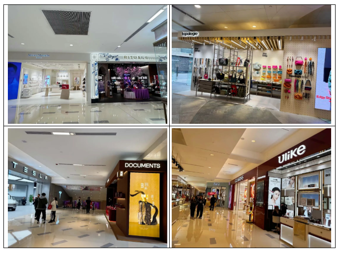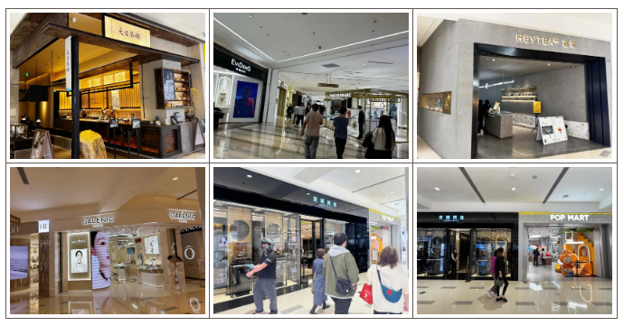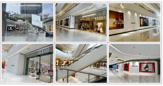 L1-L3整体国际大牌奢侈品牌双层店、跨层店占据主流,涵盖Prada、LV、CELINE、LOEWE、SANIT LAURENT、FENDI、VALENTINO、BALENCIAGA等。