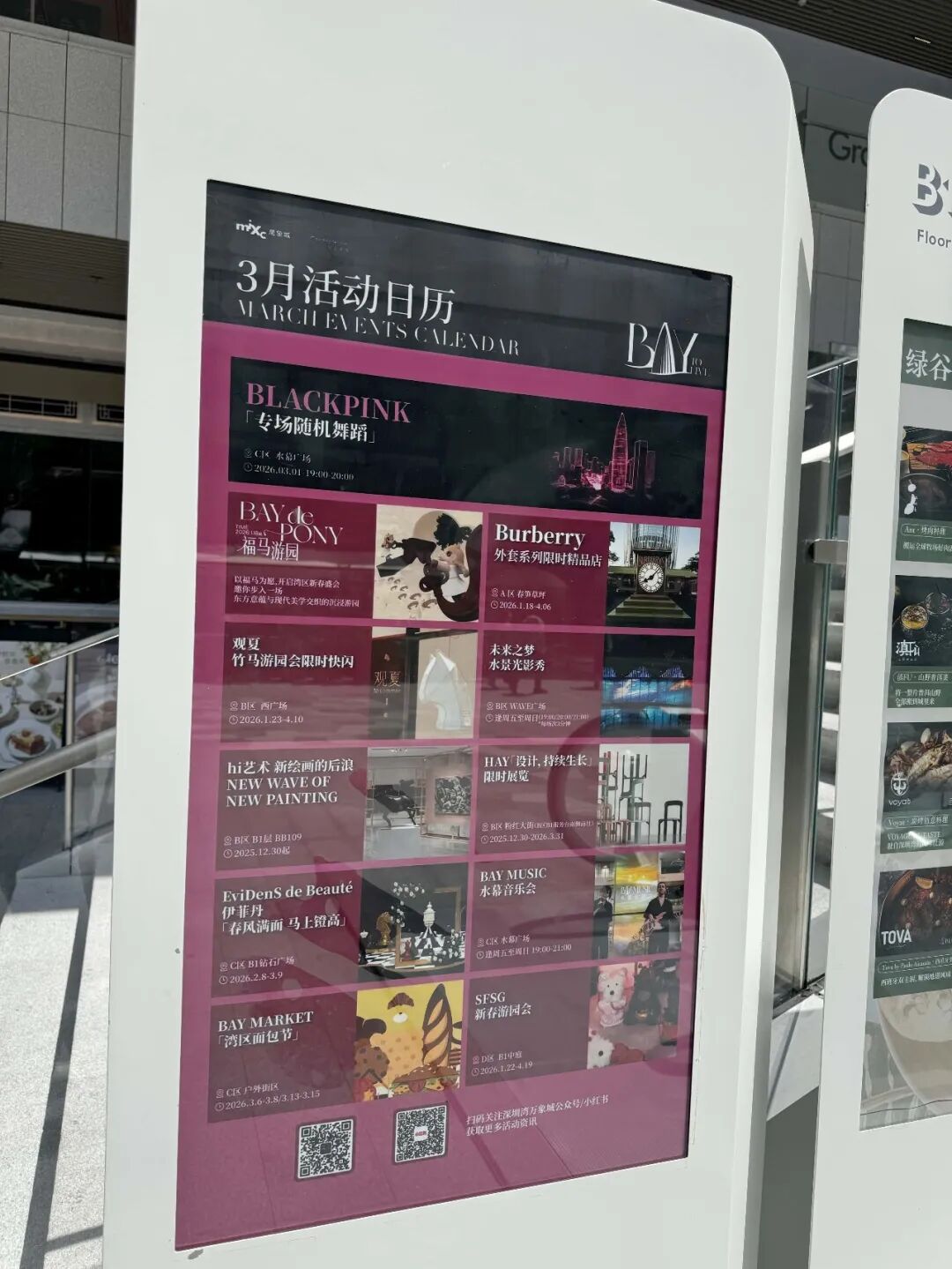 粉红大街作为连通一期、二期和深圳湾文化艺术中心的地下商业街,也是国内首个艺术馆级商业街区,自2025年12月30日开街之后,IIRice两碗米饭、椿田熟成茶行、il Bliss 冰淇淋实验室、麦当劳全球首家麦麦美术馆、多抓鱼循环商店、BigGallery大美术馆、HAY等40家品牌亮相,其中多数为首店或旗舰店,与一期、二期品牌形成进一步的差异化分层。
