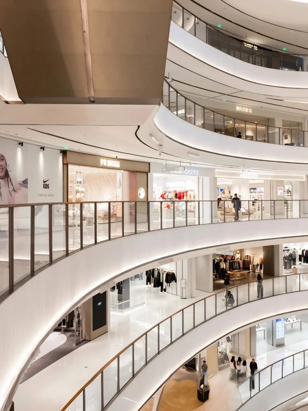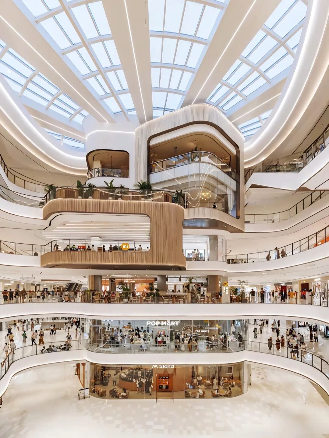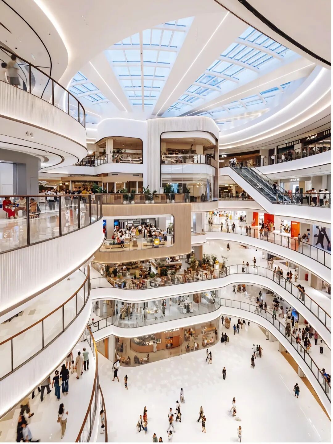 在六层打造环形连廊,嵌入悬浮绿植与休息座椅,模拟山谷层次感,让逛购过程变成“漫步山谷”的沉浸式体验,完美践行“让空间适配人,而非人迁就空间”的设计初心。