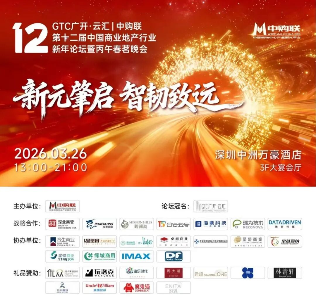 以智应变、以韧致远,已成为行业穿越周期、迈向长远的核心共识;智慧赋能、韧性筑基,正推动商业生态在动态平衡中实现高质量、可持续的长远发展。3月26日,中购联第十二届中国商业地产行业新年论坛暨丙午春茗晚会在深圳南山中洲万豪酒店盛大启幕。以“新元肇启 智韧致远”为主题,本次论坛邀请商业地产开发商、运营商、零售商等业内各方精英人士齐聚一堂,共话智慧策略,共筑韧性根基,共创商业发展新纪元!