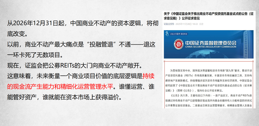 未来租金增长依托地段价值提升与CPI锚定,具备天然的抗通胀属性,但存在租金瓶颈;突破关键在于精准定位、招商优质品牌,做好欠租和掉铺预警,通过精细化运营保障出租率、稳定提升收租率。