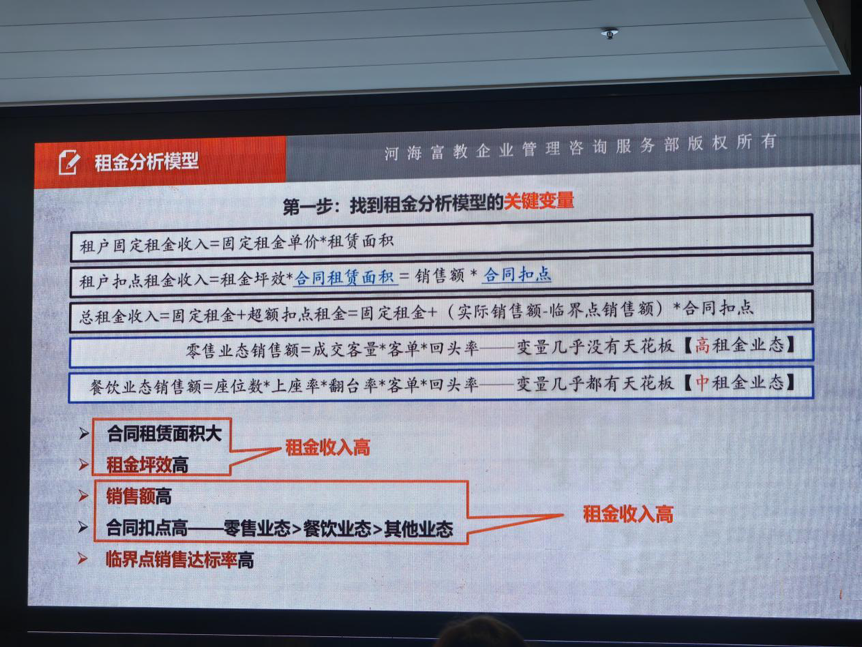 随后,杜老师还重点分享了涨租率算法和租户年度销售目标算法。